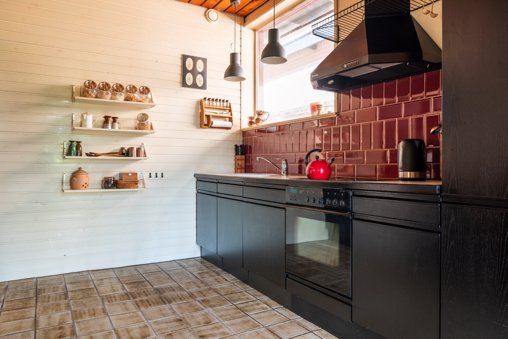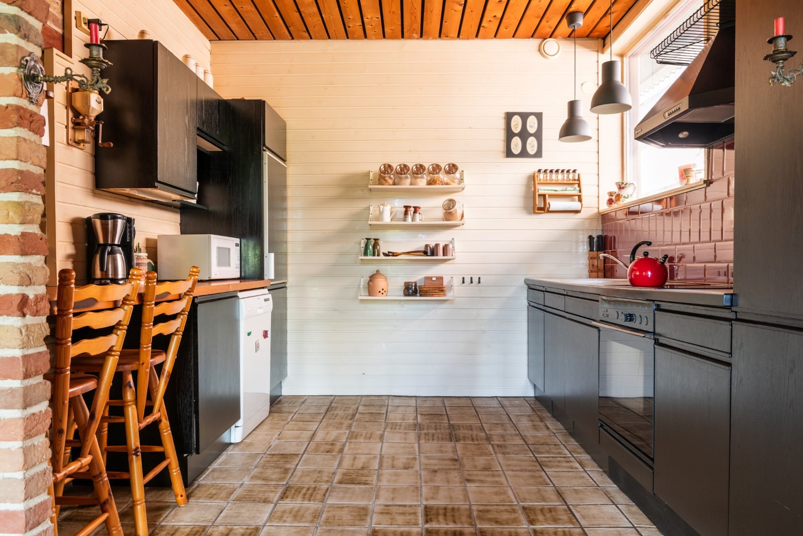 De keuken is eenvoudig uitgevoerd en voorzien van een keramische kookplaat, afzuigkap, oven, koelkast en losse vaatwasser.