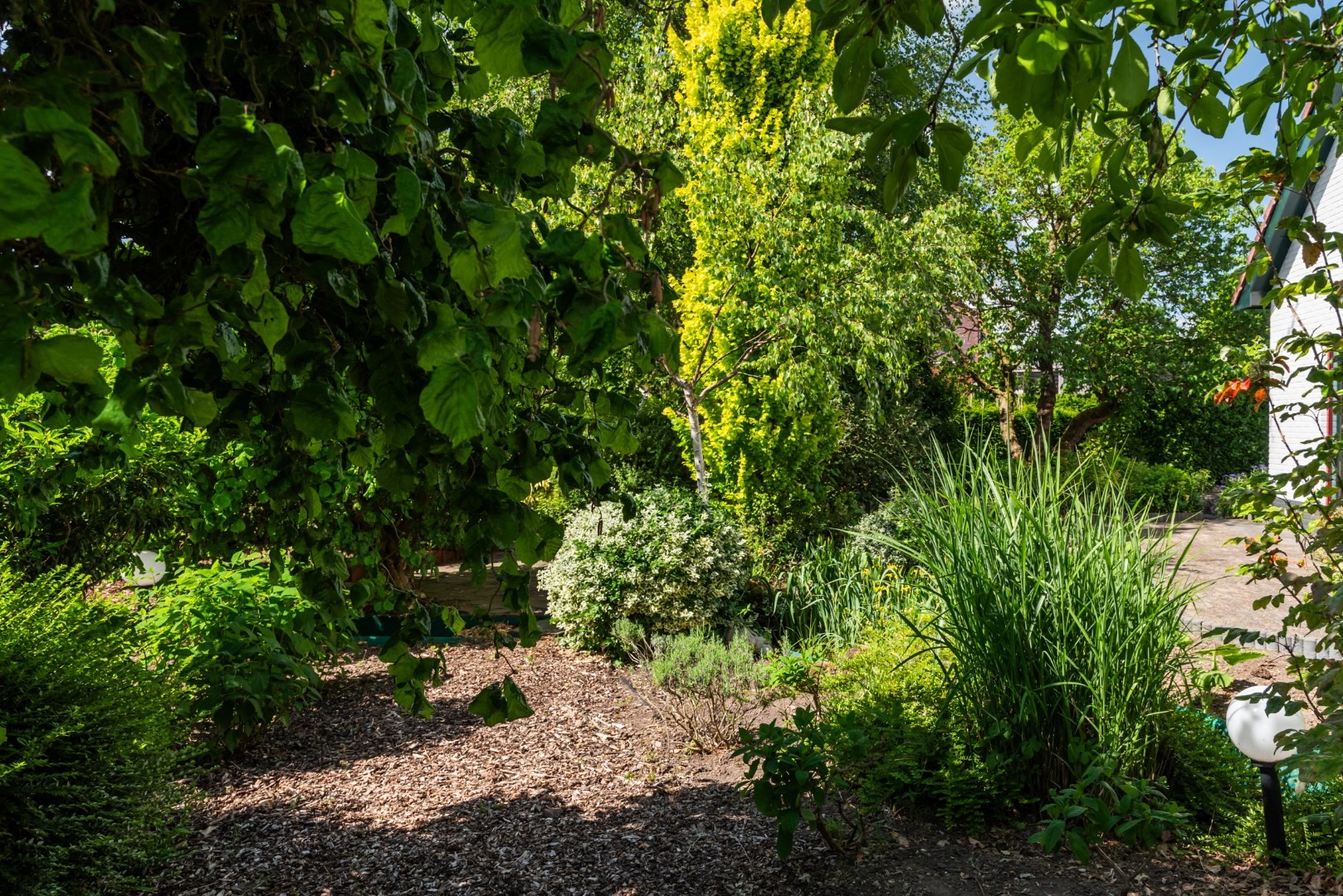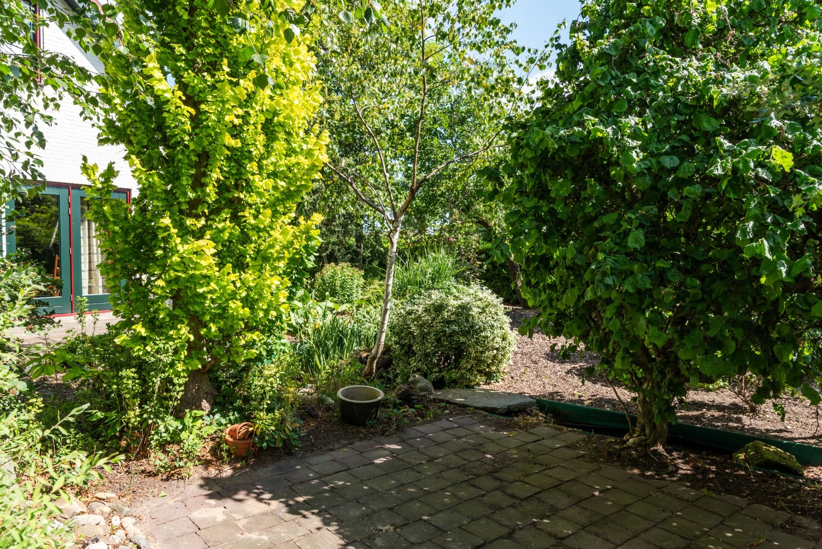 De absolute eyecatcher van deze woning is de prachtig aangelegde tuin op het zuiden. Volop privacy, fraaie zichtlijnen, volwassen beplanting, sierbestrating en groene doorkijkjes maken dit tot een buitenruimte waar je elke dag van geniet – of je nu houdt van zonnebaden, tuinieren of borrelen op het terras bij de openslaande deuren.