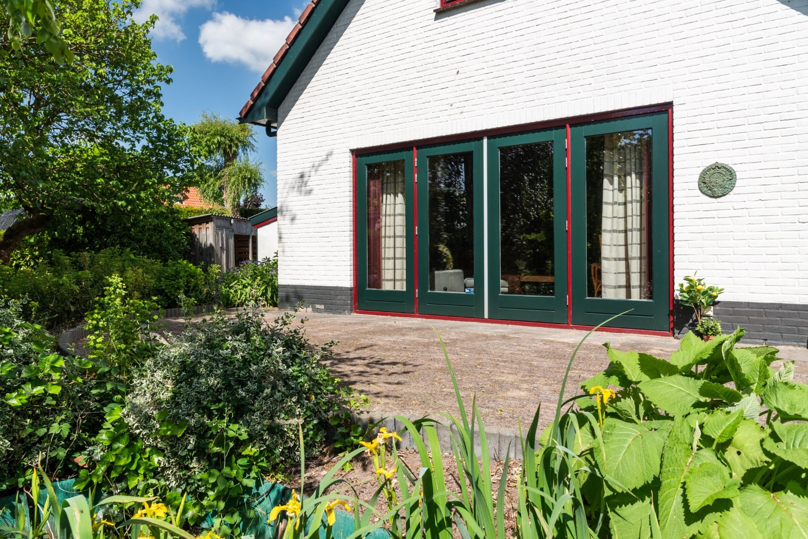 Aan de achterzijde van de woning vind je een handige berging met achterom – ideaal voor fietsen of tuinspullen.