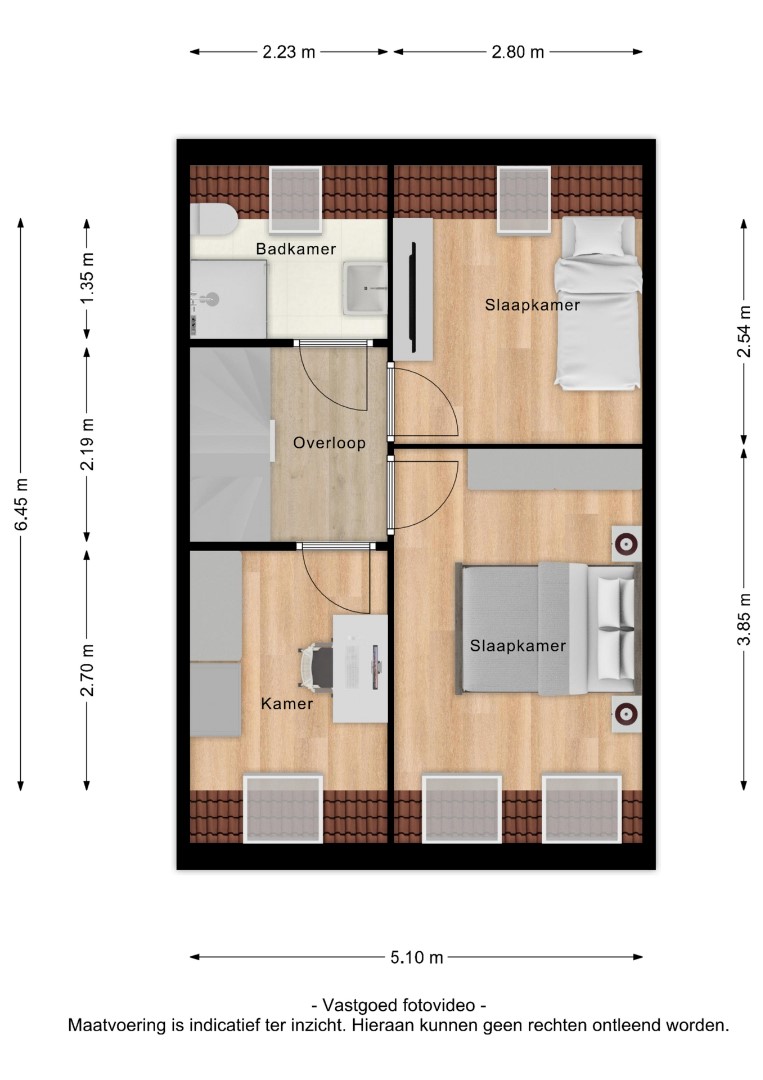 Op de eerste verdieping zijn drie lichte slaapkamers, allemaal voorzien van een nette laminaatvloer.