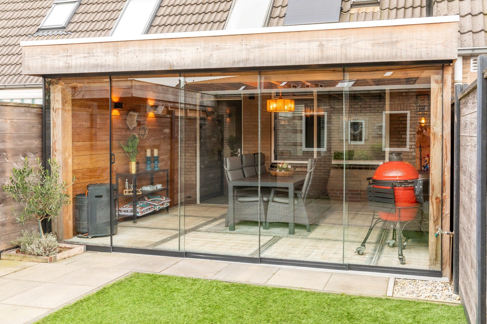 Met de glazen schuifwand creëer je hier het hele jaar door een heerlijke plek om te ontspannen.
