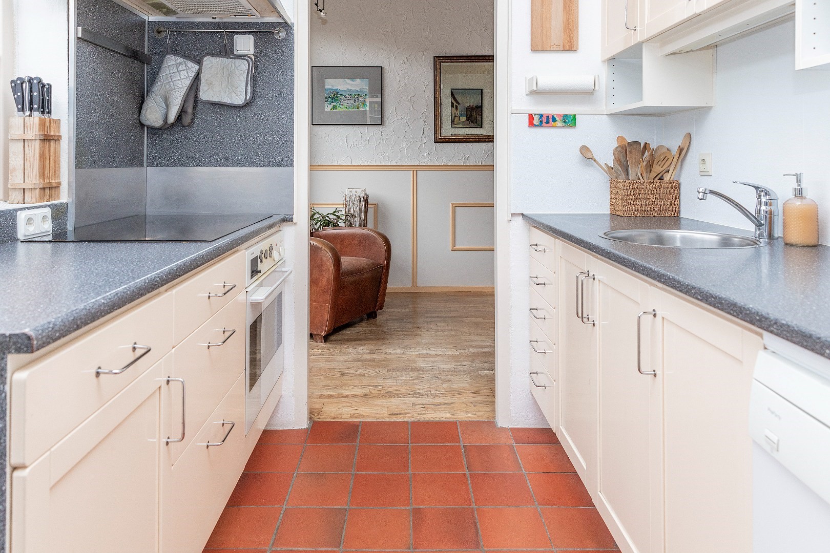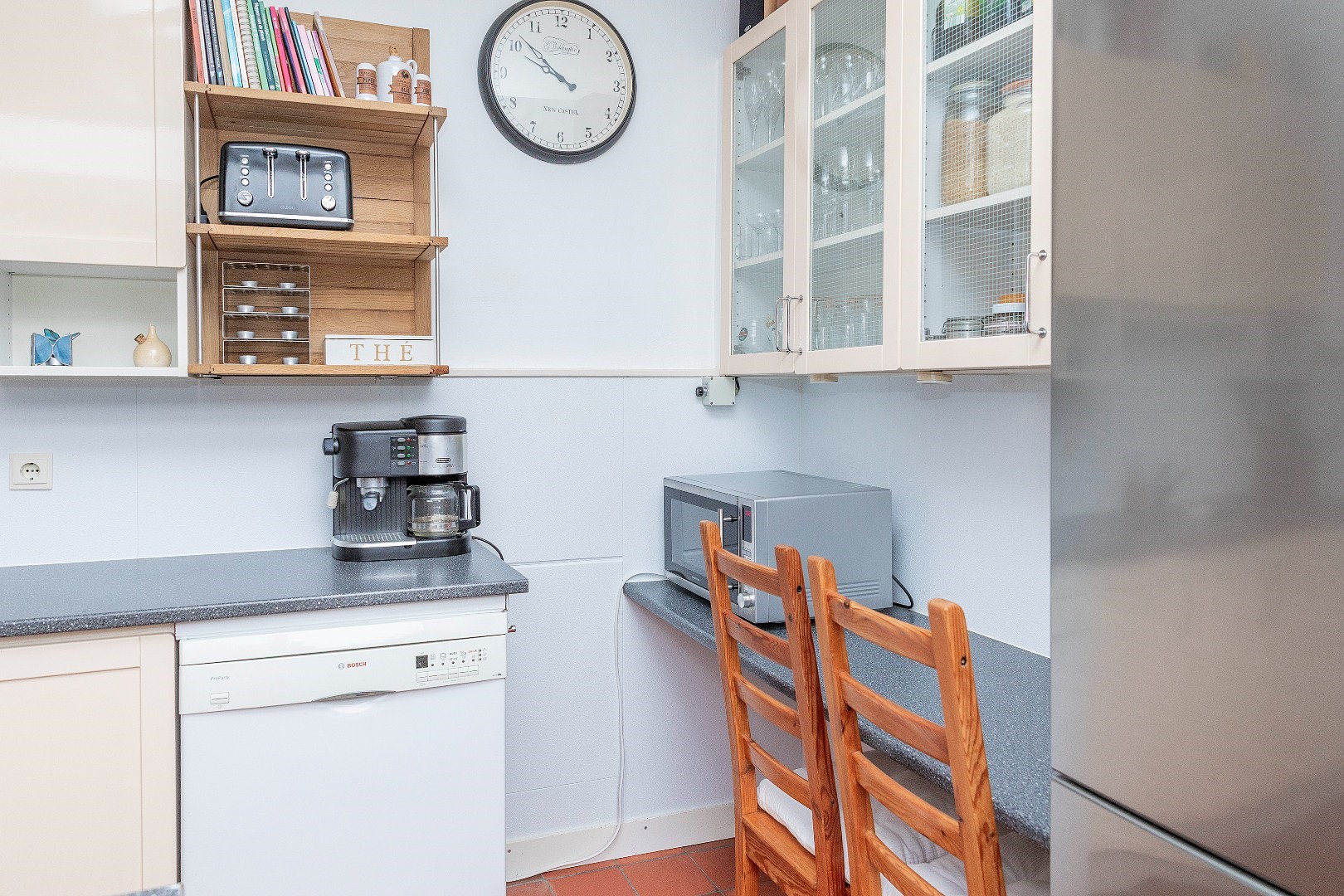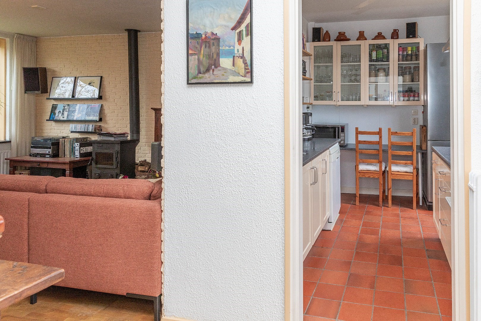 In directe verbinding met de eethoek ligt de halfopen keuken, waar in 2024 nog een nieuwe brede inductiekookplaat is geplaatst op een verzwaarde kookgroep.
