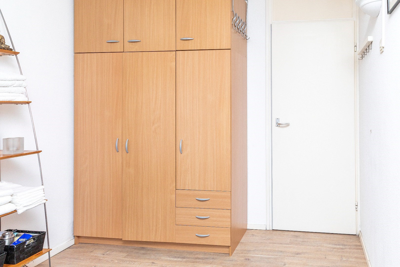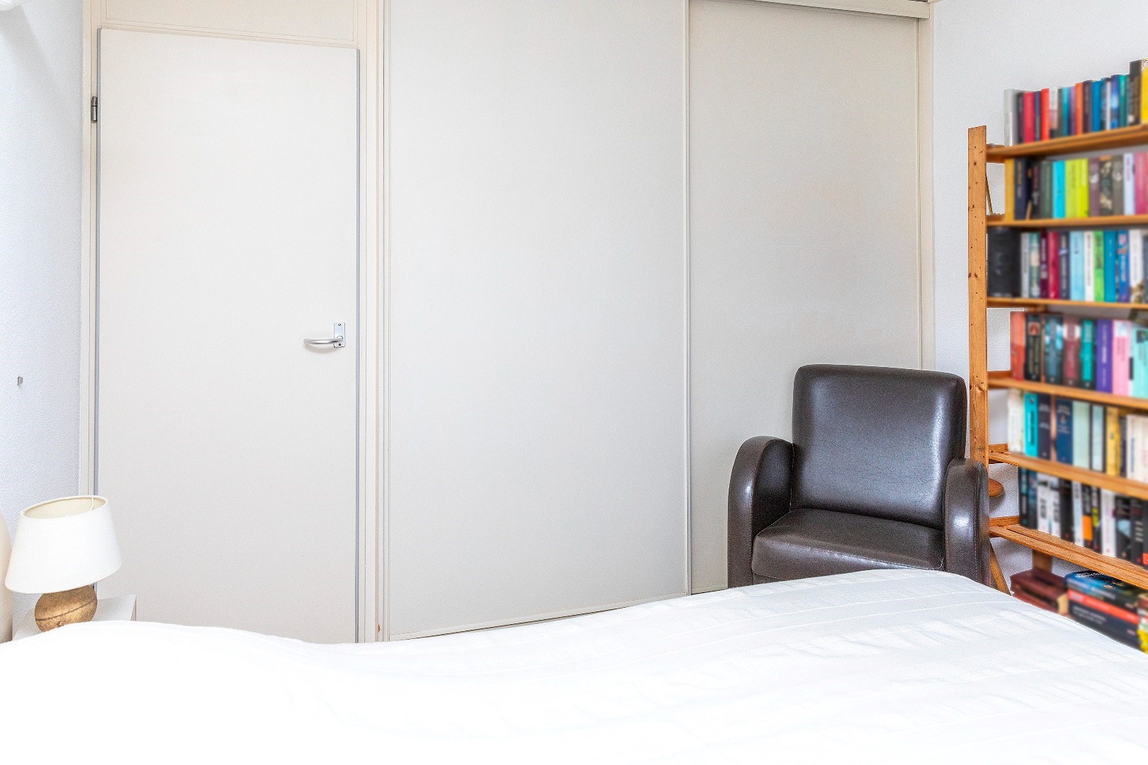 De twee grootste slaapkamers zijn beiden voorzien van ruime inbouwkasten met een dubbele schuifwand.