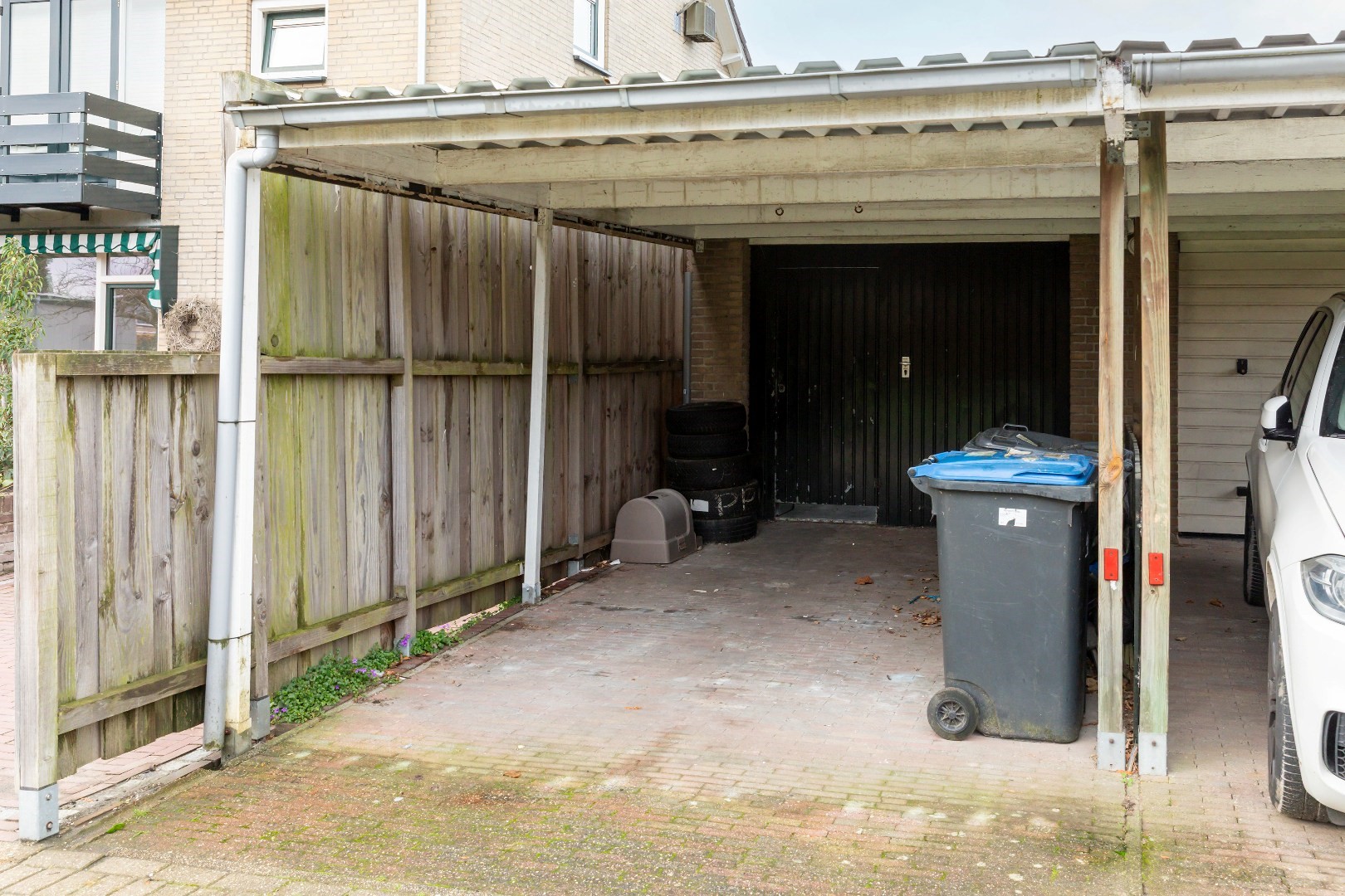 Achter op het perceel staat een stenen berging, die is verbonden met de garage en carport aan de naastgelegen straat.