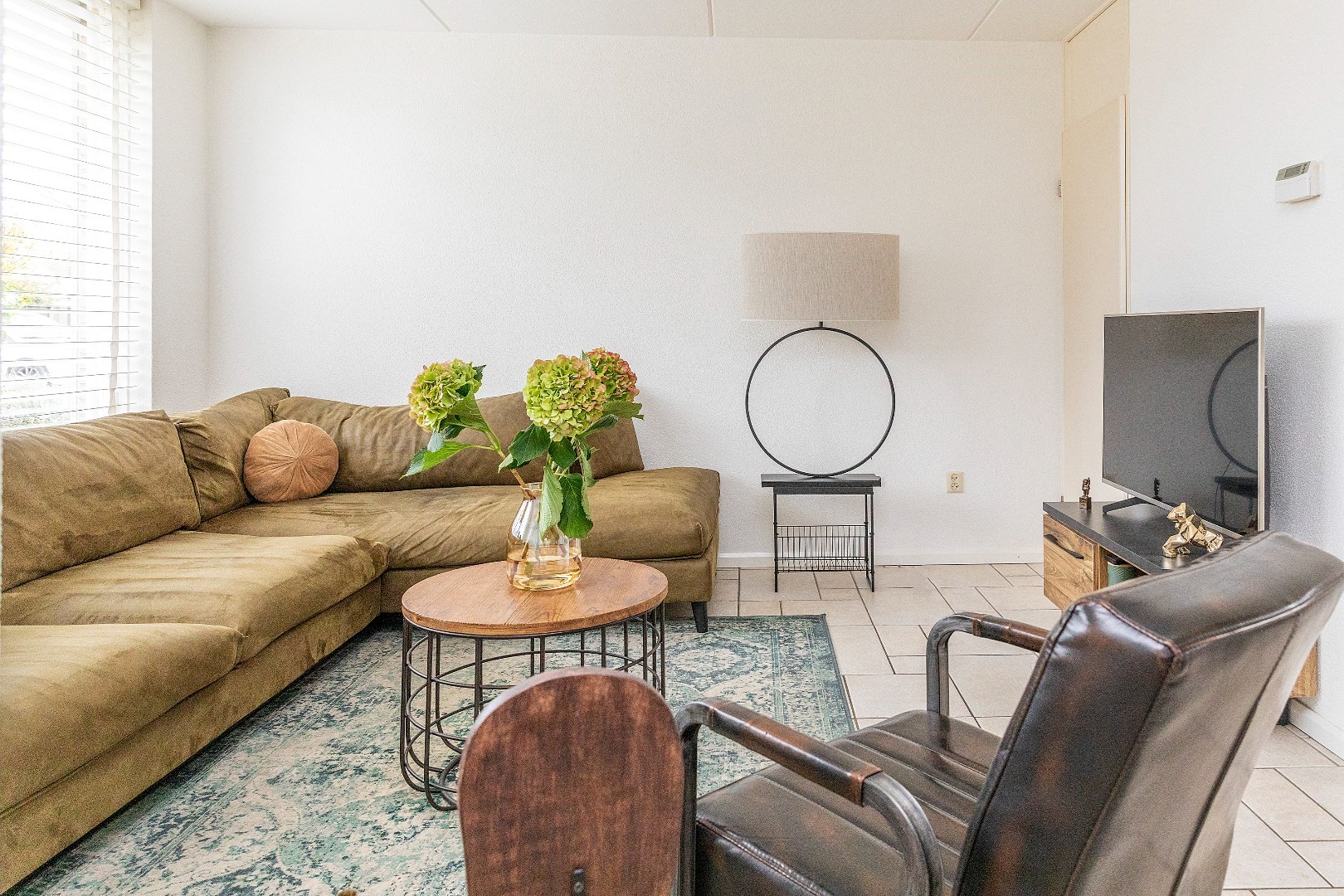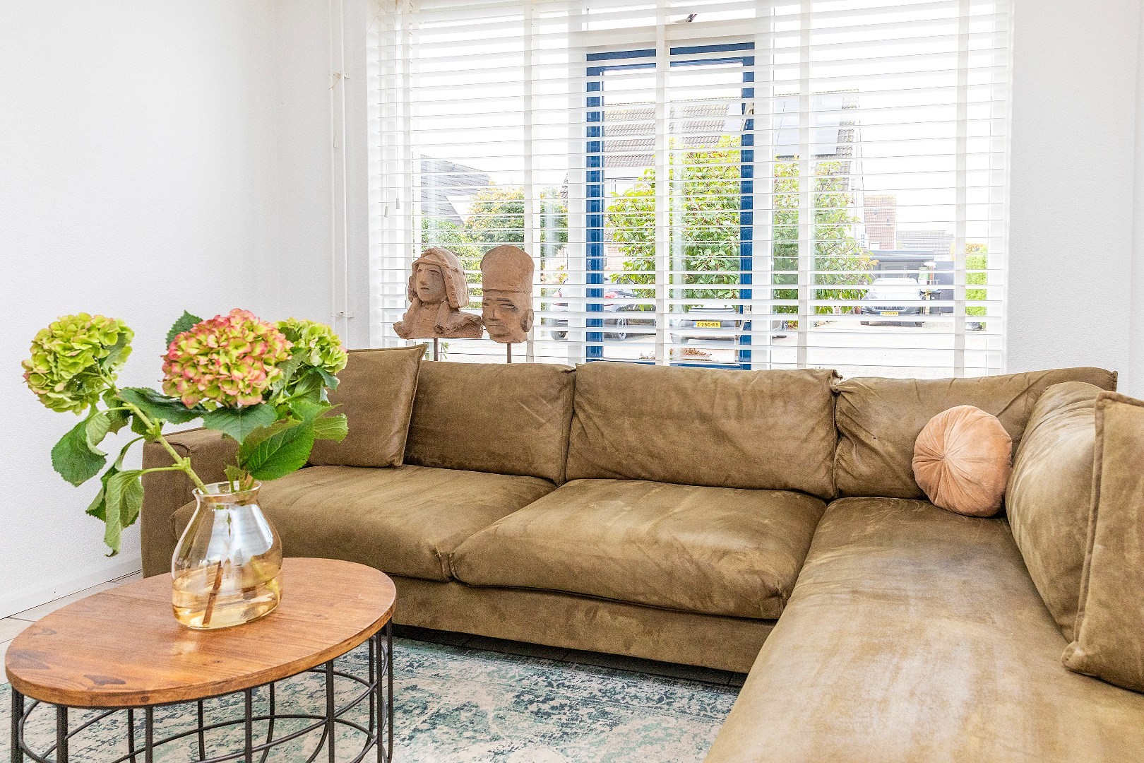 De lichte woonkamer ligt aan de straatzijde en heeft een prettige, open sfeer.