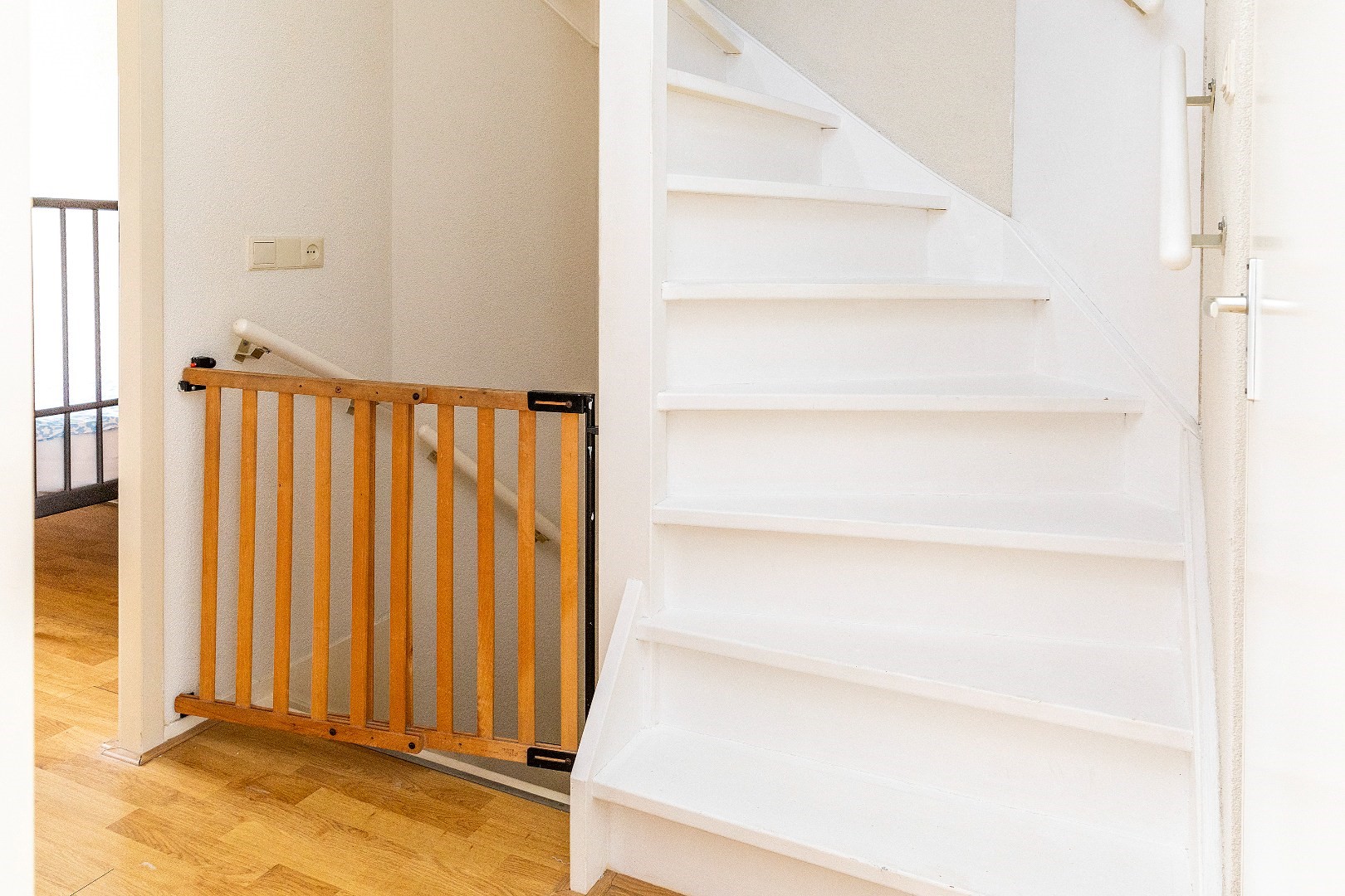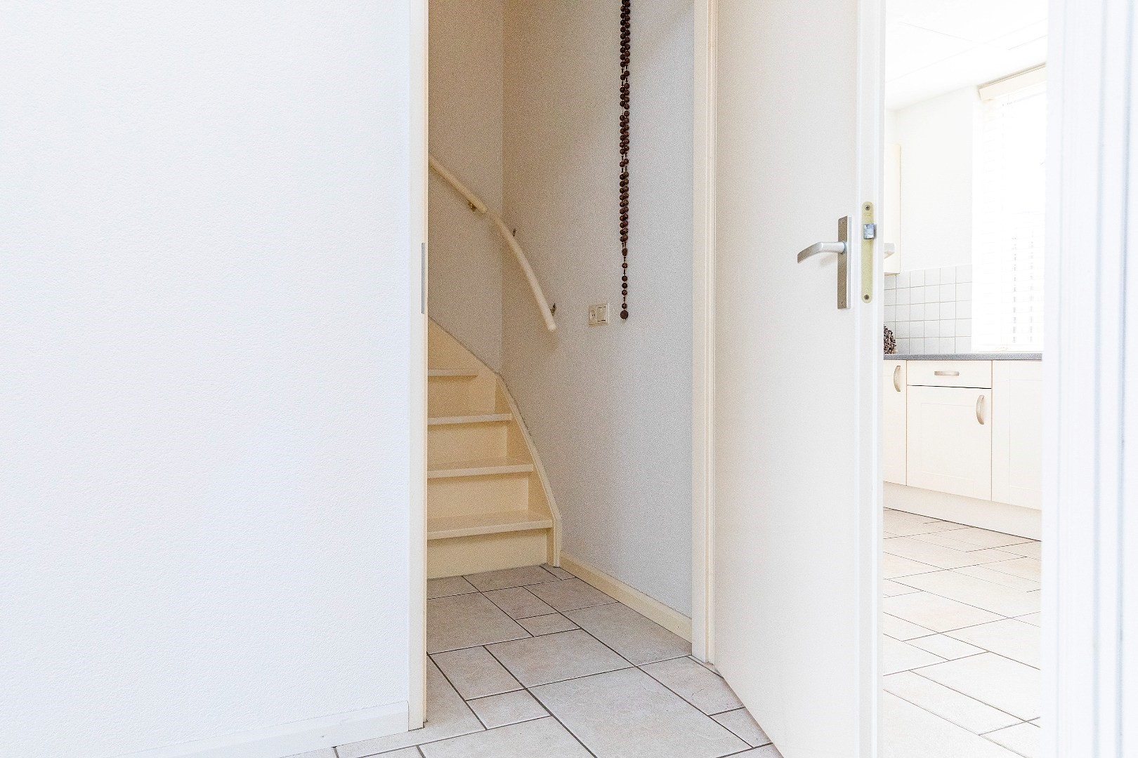 De praktische trapkast is vanuit de woonkamer bereikbaar.