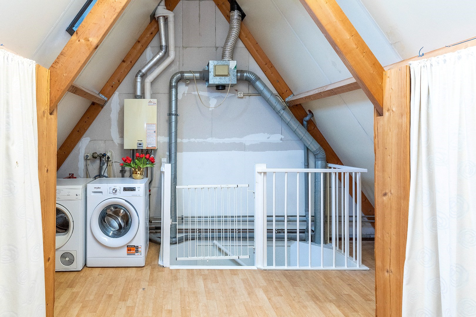 Een vaste trap leidt naar de tweede verdieping.