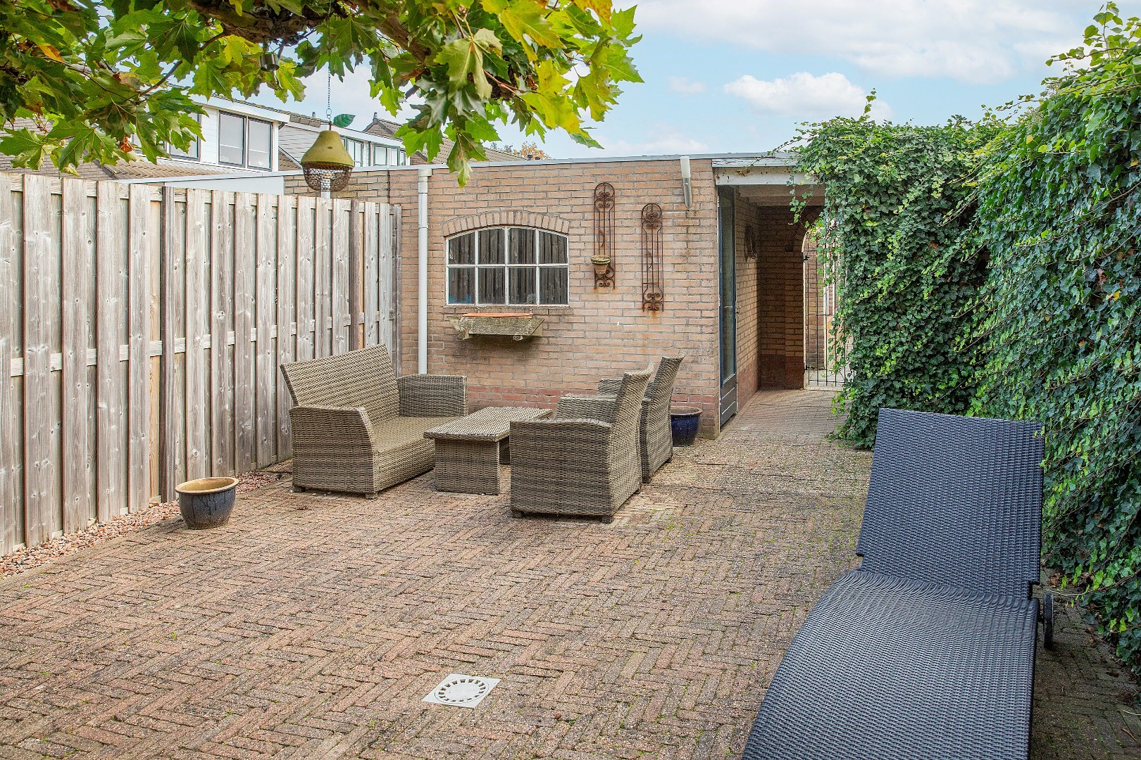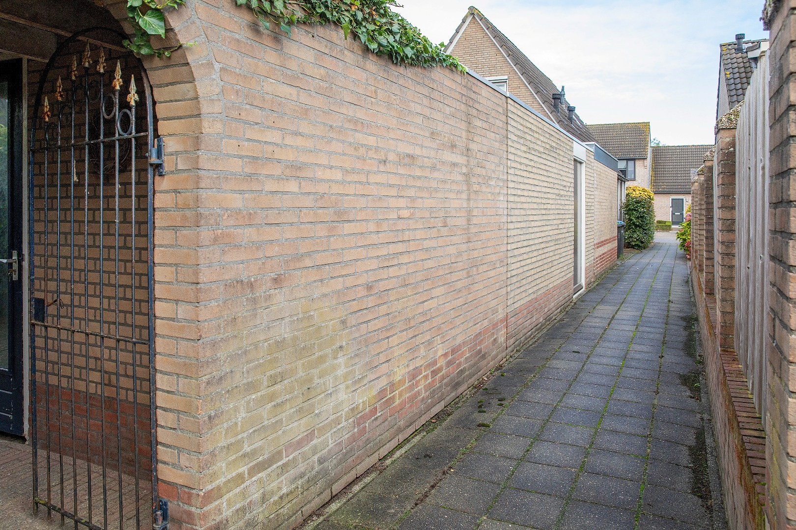 Achter op het perceel staat een stenen berging, ideaal voor fietsen en tuingereedschap. Daarnaast is er een praktische overkapping met poort naar de achtergelegen gang – een handige achterom die het dagelijkse gemak compleet maakt.