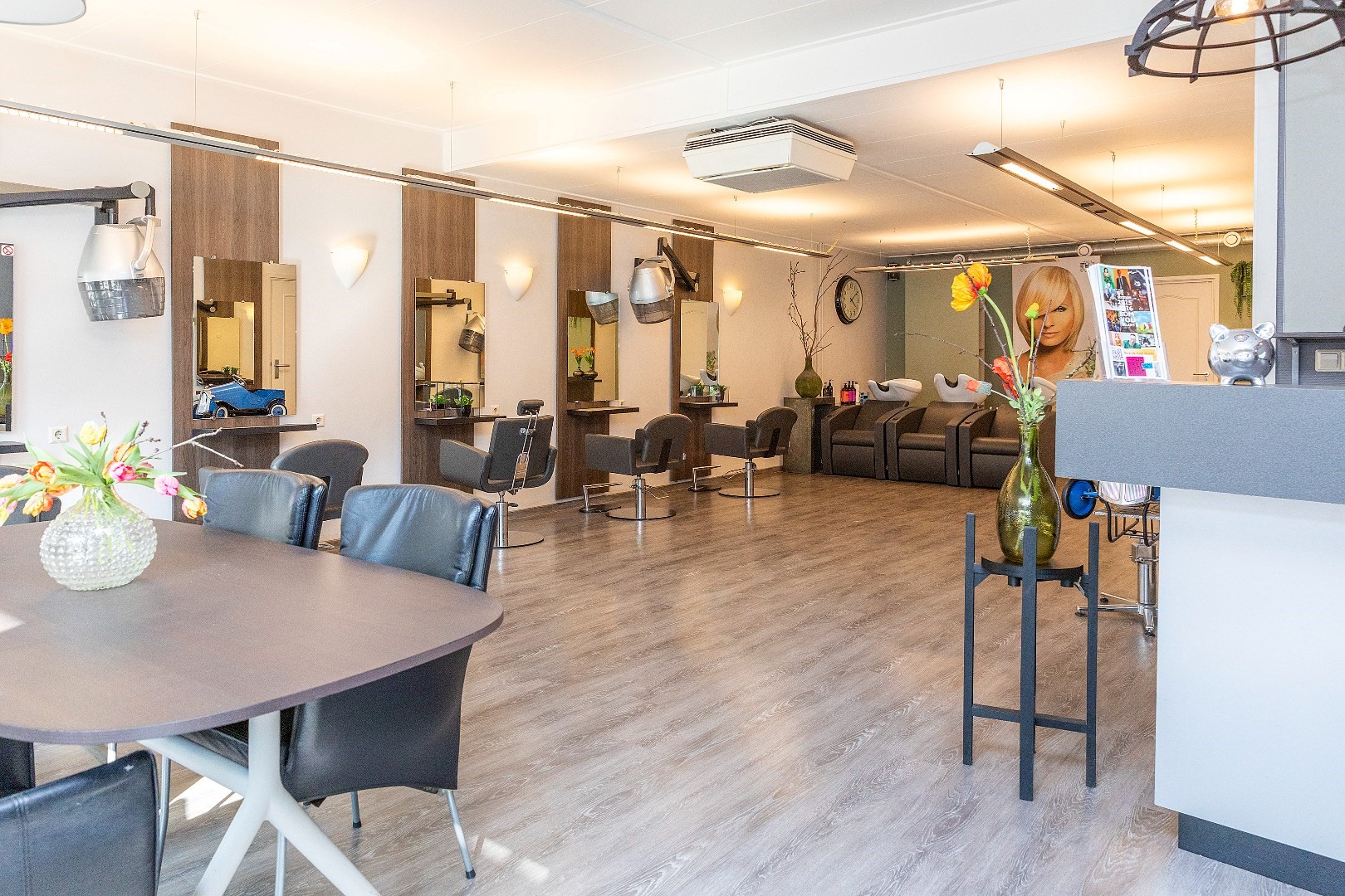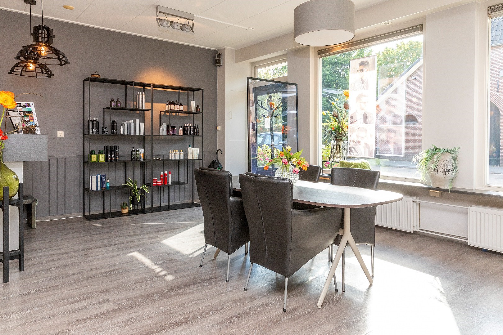 Aan de voorzijde bevindt zich de entree van het bedrijfsgedeelte, dat nu in gebruik is als kapsalon.