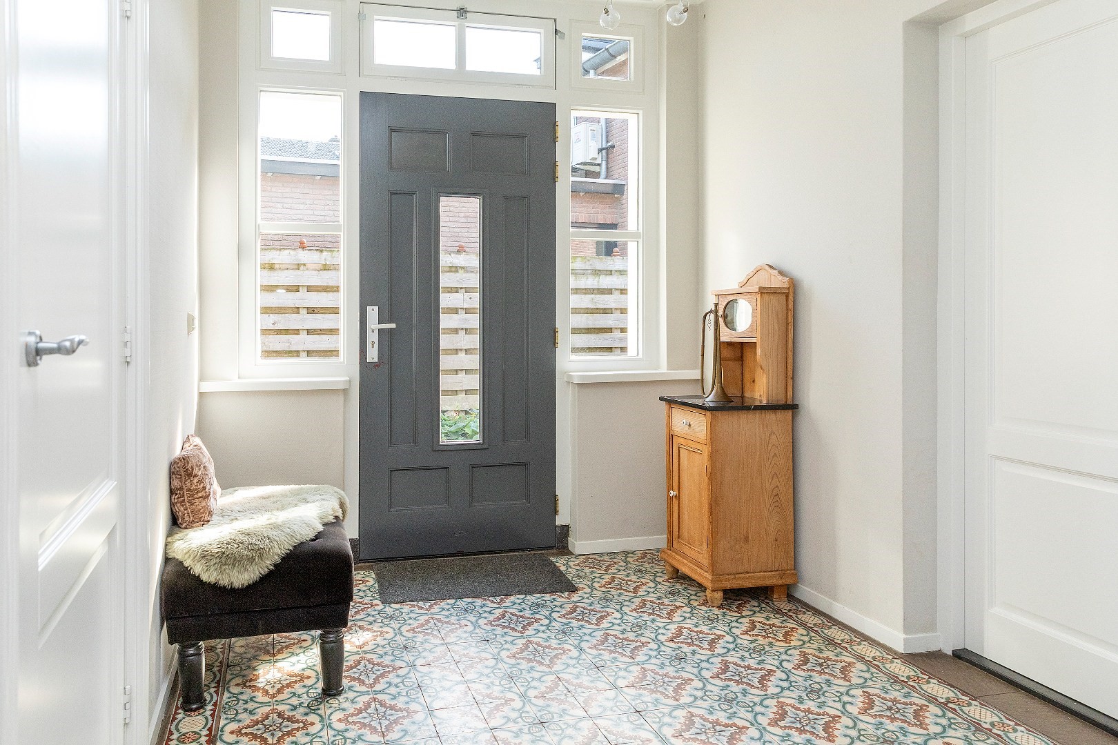 De ruime hal met een prachtige plavuizenvloer vormt de stijlvolle binnenkomst en geeft toegang tot de verschillende leefruimtes.