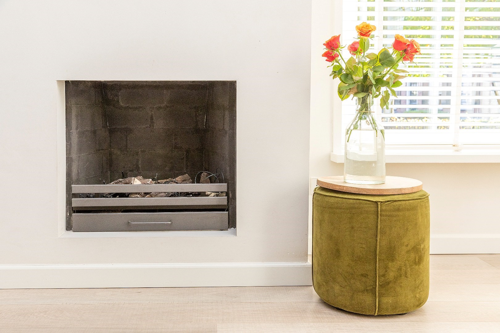De living is een heerlijke plek om tot rust te komen bij de gashaard, terwijl de eetkamer met haar gaskachel uitnodigt tot lange, gezellige avonden aan tafel.