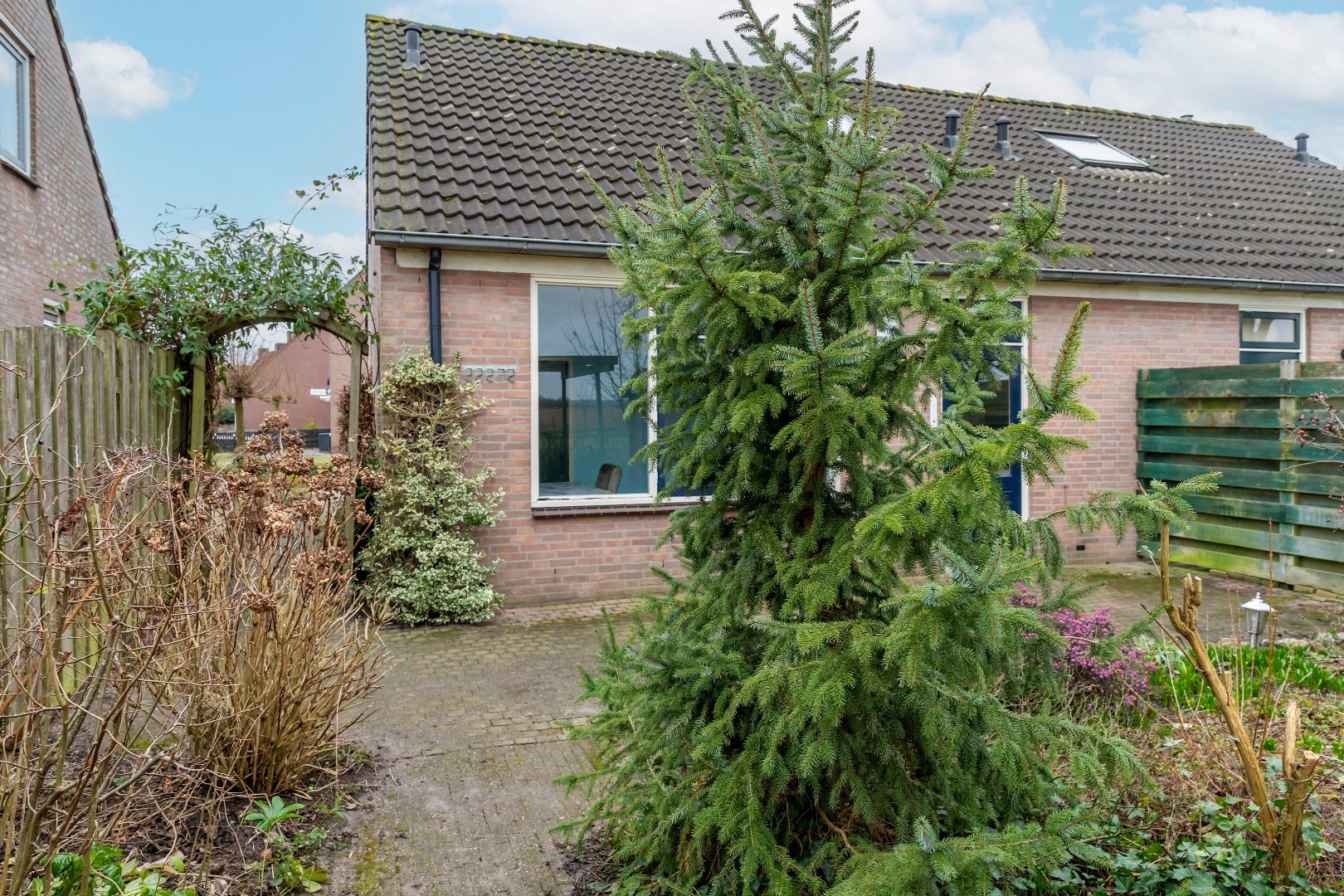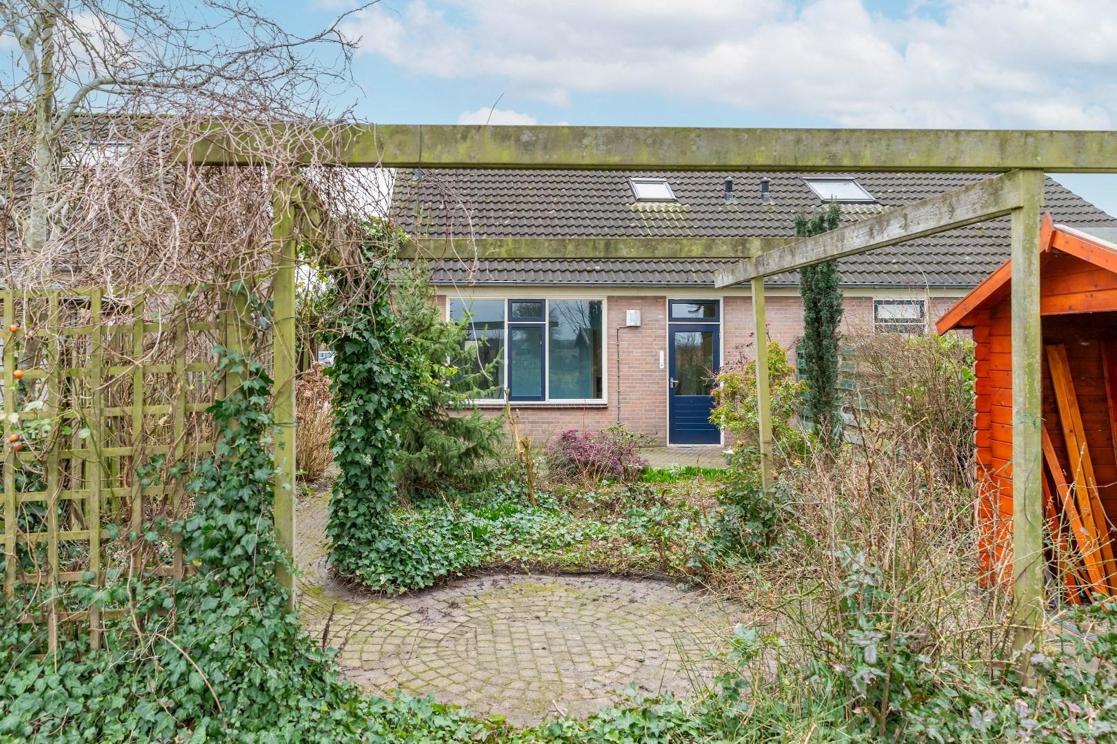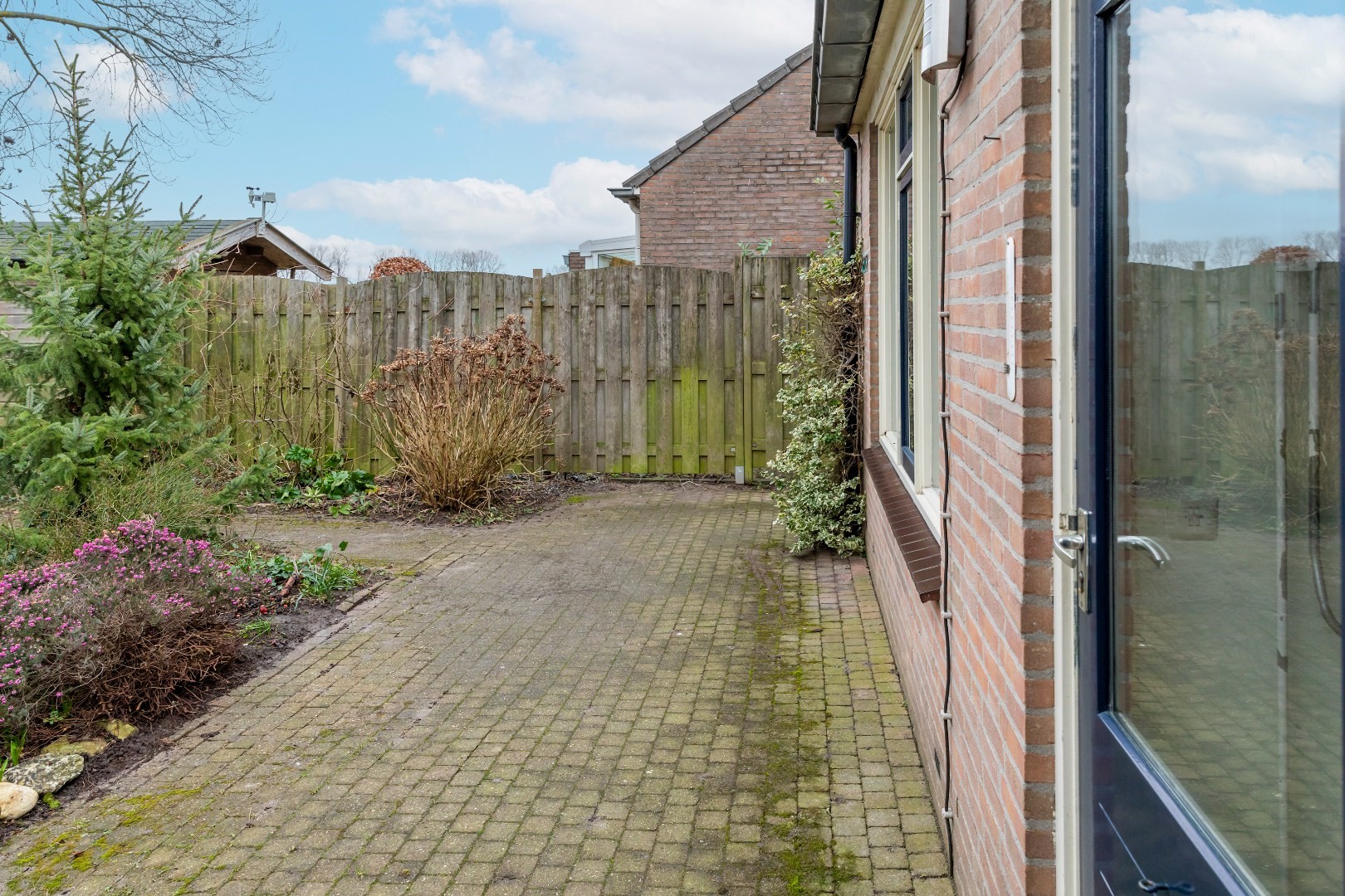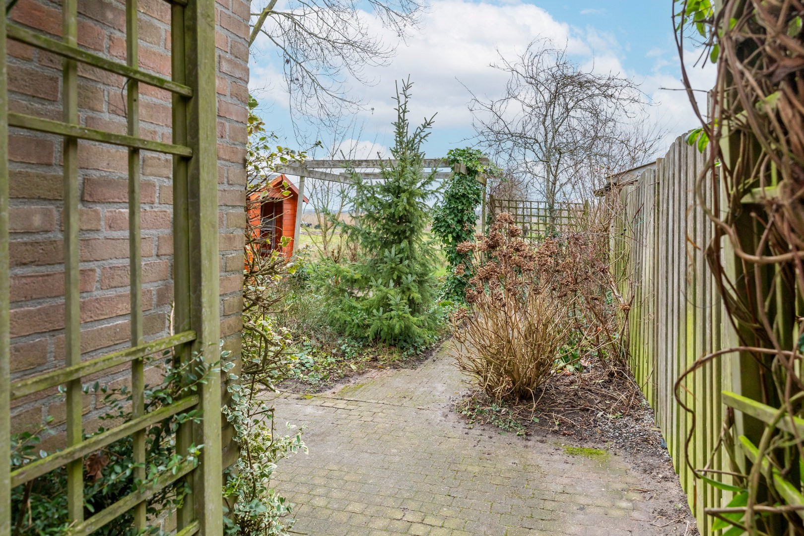 Naast de woning bevindt zich een handige achterom naar de tuin.