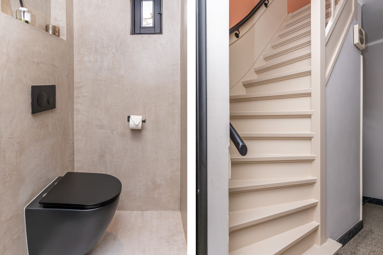 Het recent vernieuwde toilet in de hal (met authentieke granito vloer) sluit hier naadloos op aan.