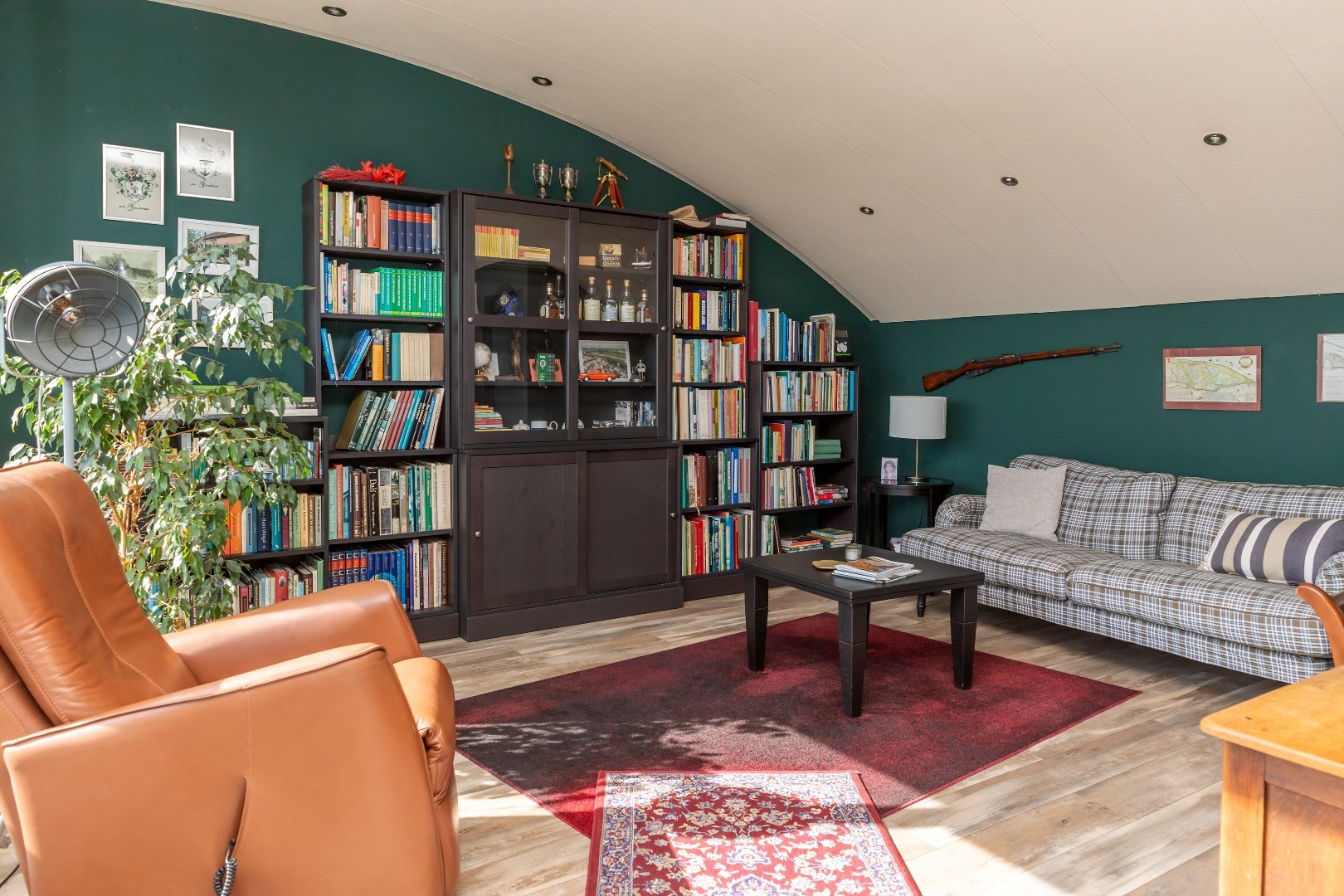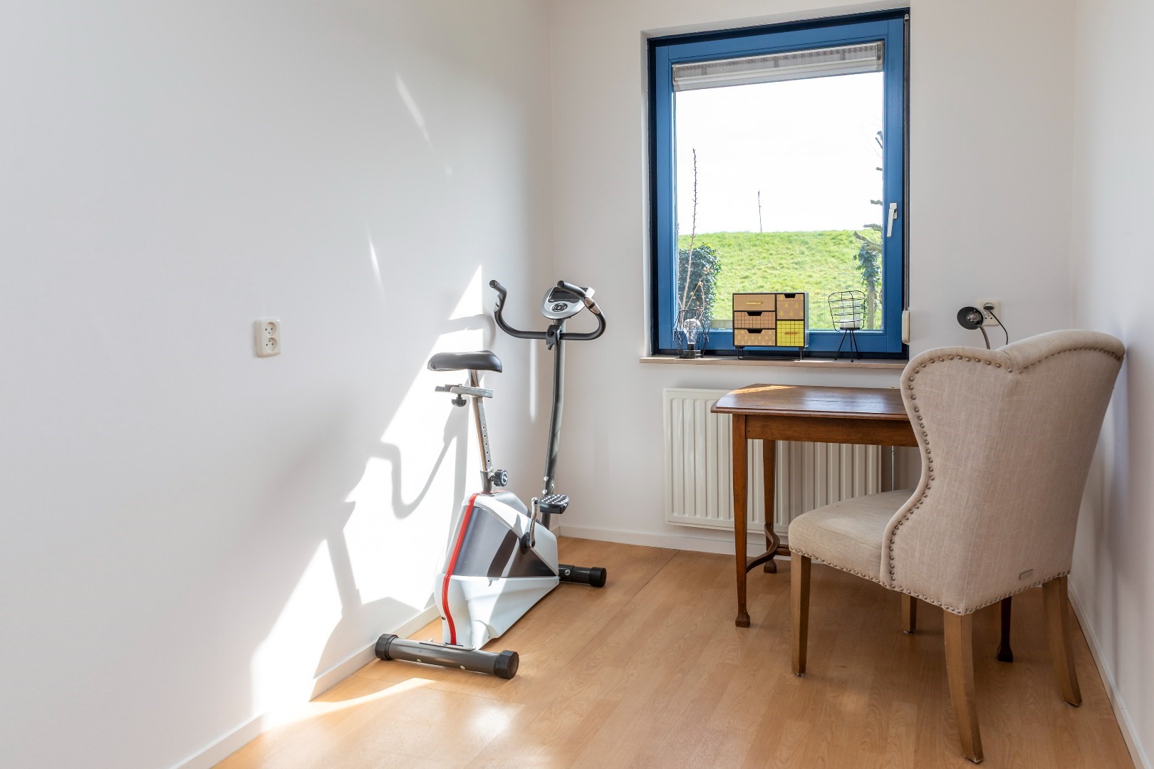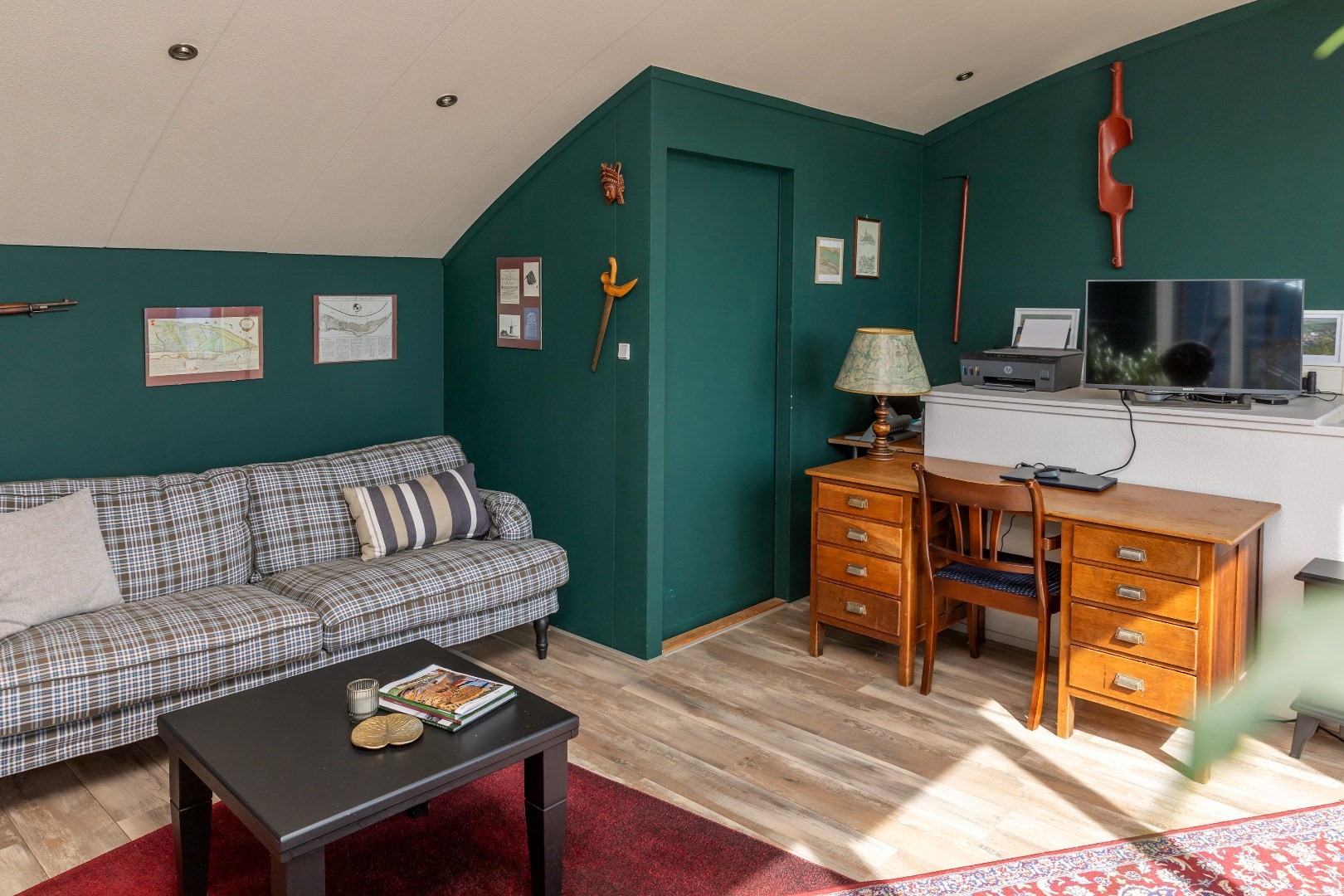 Deze ruimte, met toegang tot het riante dakterras, is een oase van rust en inspiratie.