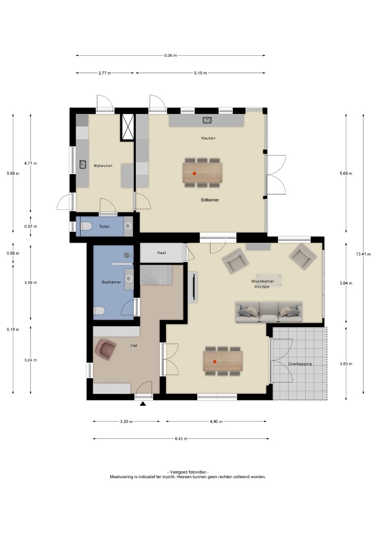 Aansluitend bevindt zich de bijkeuken met buitendeuren aan de noord- en oostzijde,