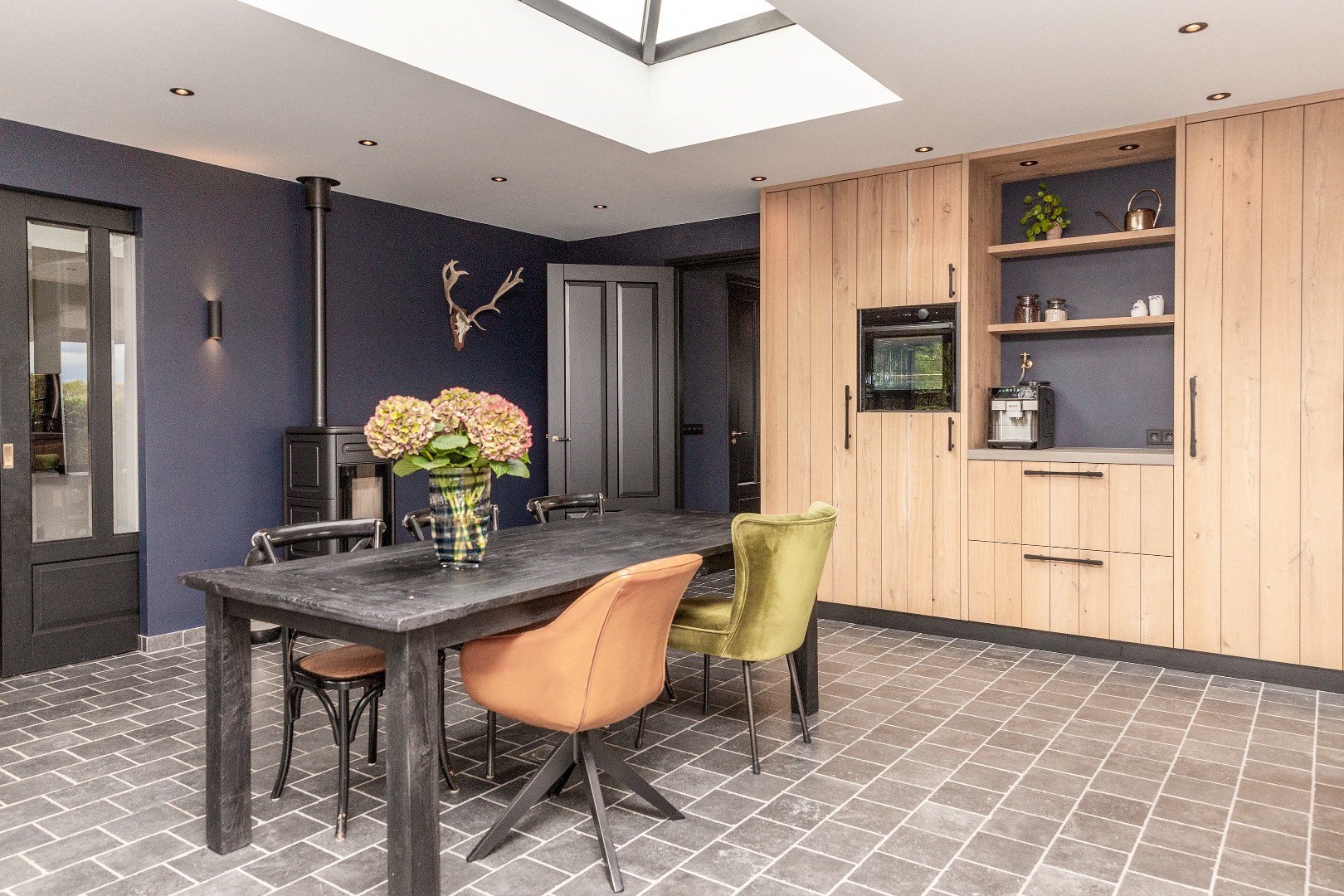 Aan de achterzijde van de woning bevindt zich de indrukwekkende woonkeuken, compleet