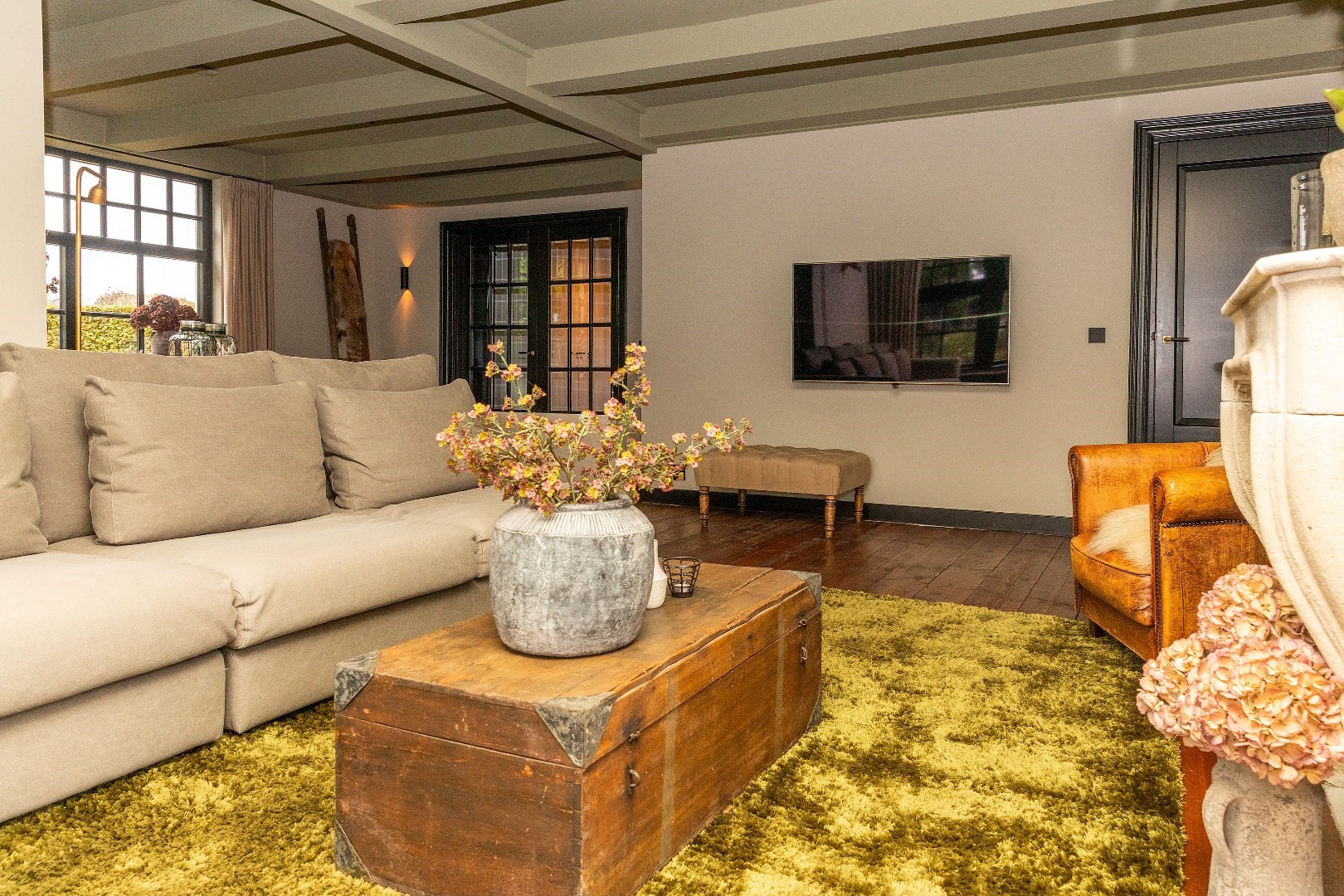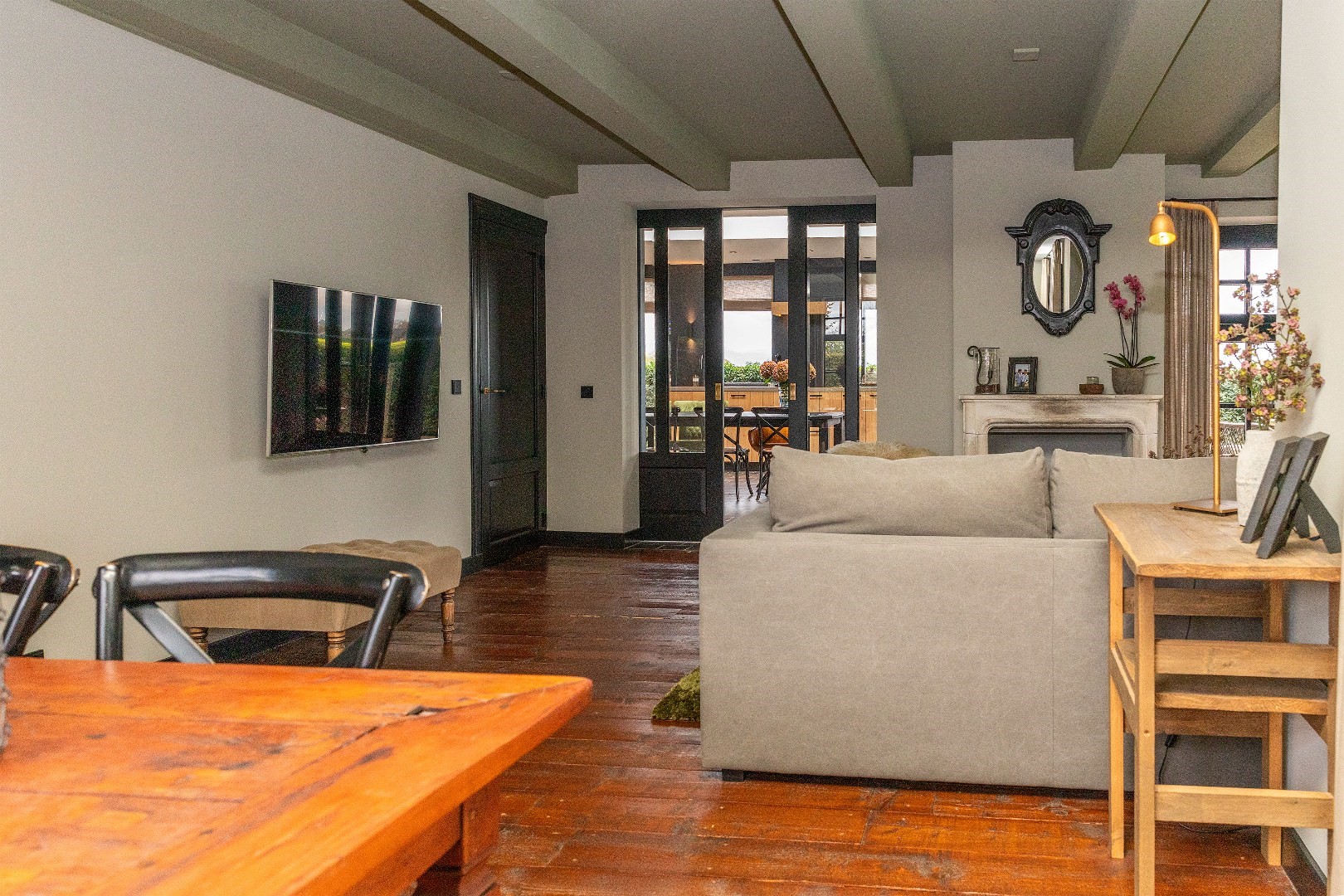 plafondbalken en warme houten vloer. Er is hier volop uitzicht over het eigen terrein. Er bevindt