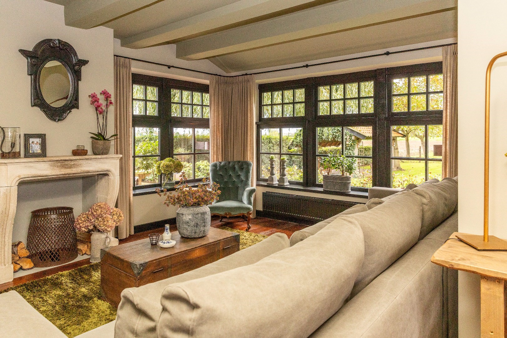 zithoek rondom de schouw en in de nostalgische erker. In de voorkamer is volop plek voor een
