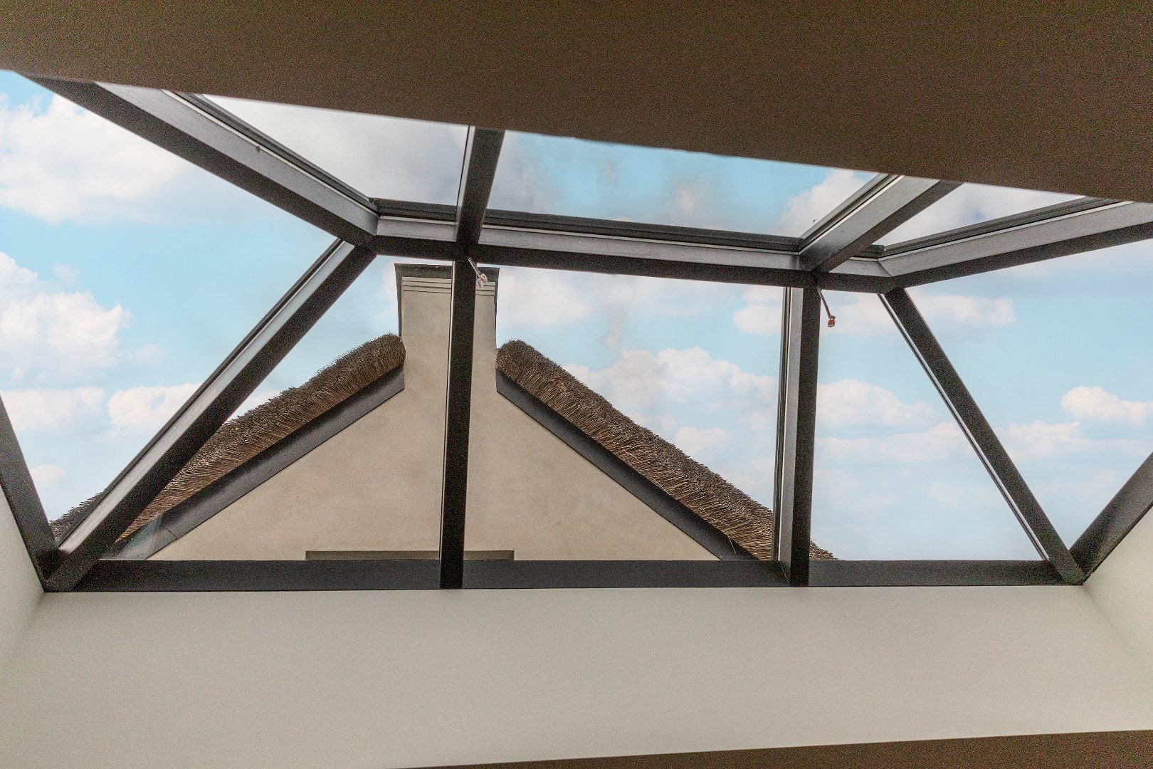 lichtstraat in het plafond en de royale glaspartij aan de tuinzijde zorgen voor een ongekende