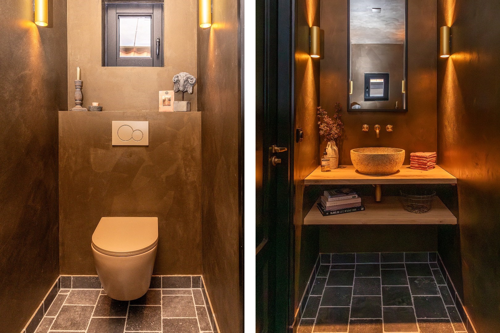wasdroger en een close-in boiler. Ook het royale gastentoilet met een moderne betonlook