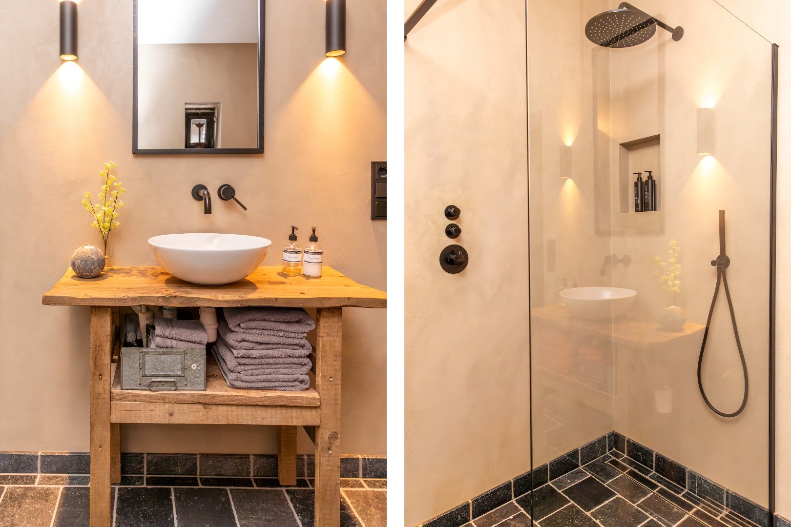 keramiek waskom. De inloop douche is ruim opgezet en beschikt over een hand- en