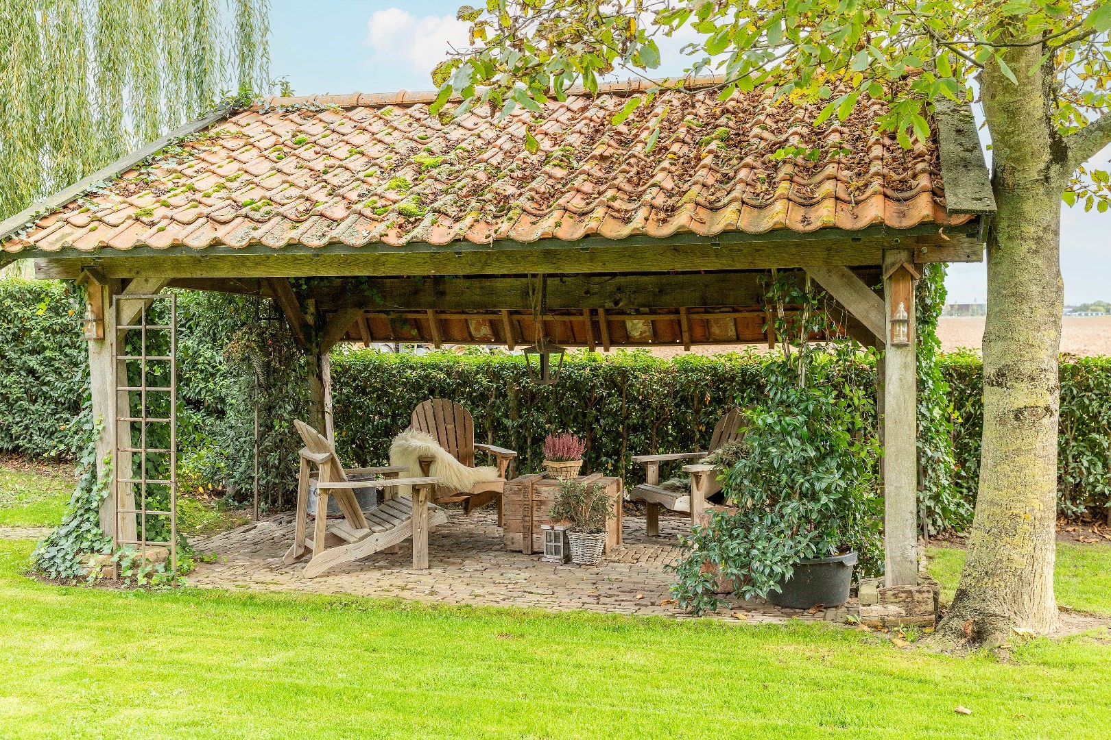 een sfeervolle veranda waar u heerlijk beschut kunt genieten van lange zomeravonden. Verder in