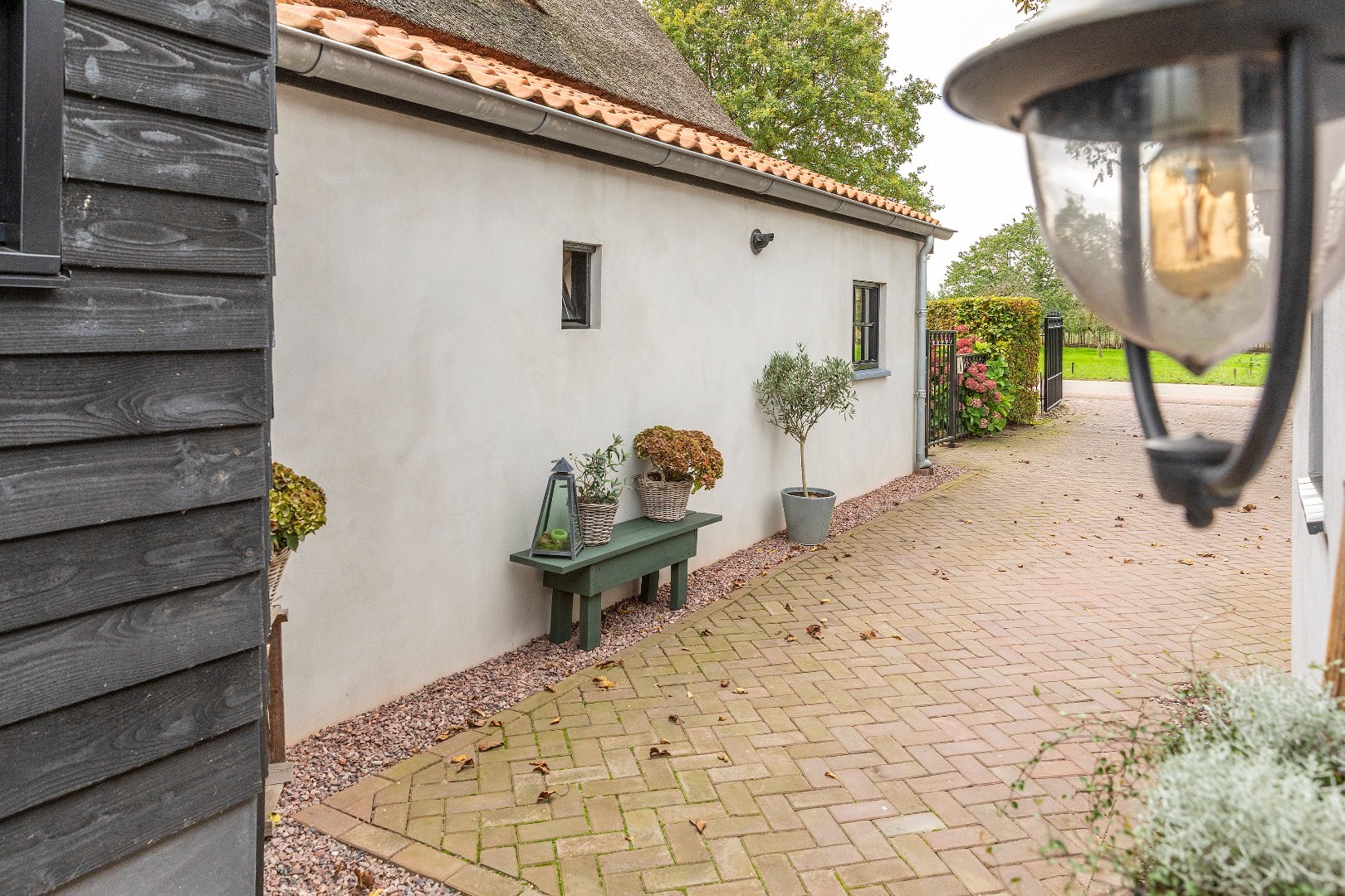klasse uitstraalt. Het rieten dak (schroefdakconstructie; brandveiliger, lagere opstalpremie)